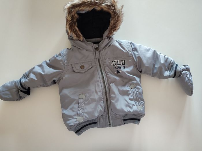Manteau Lulu Castagnette avec mouffles. Jamais mis. Le logo est un peu parti au lavage ! Sinon très bon état. 6 mois.