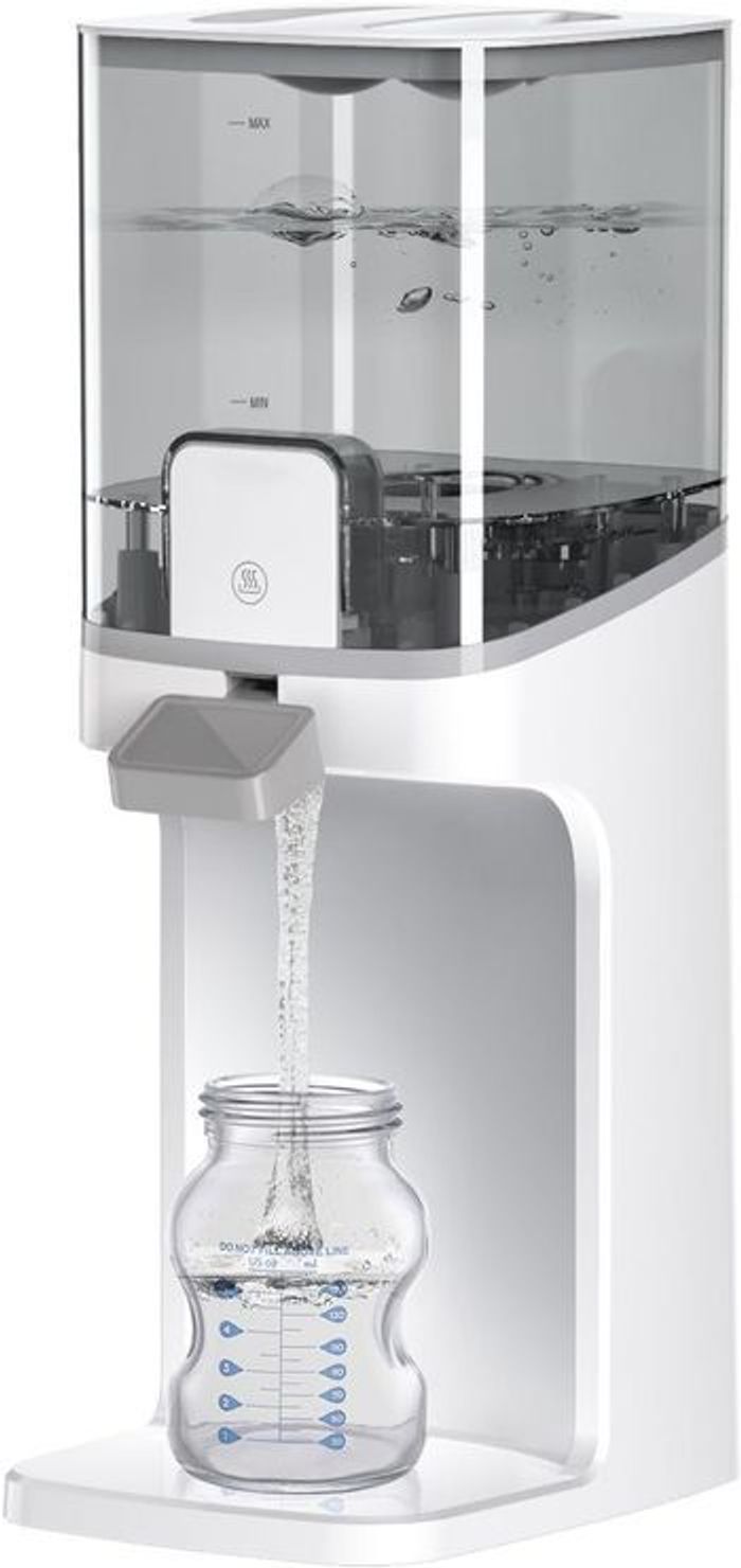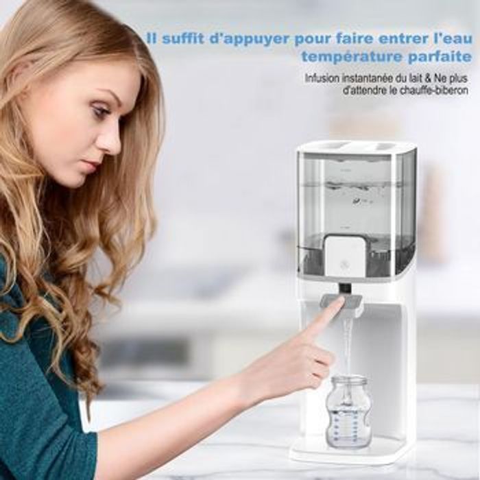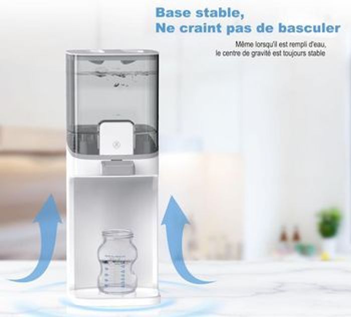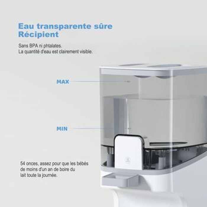 boite jamais ouverte totalement neuf et jamais utilisé Chauffe Biberon Preparation Biberon Automatique: Chauffe-biberons Petit Pot Bebe Distribution de l'Eau, Température Exacte Instantané Rapide, 3 Modes Thermostat Intelligent 24H Thermostat intelligent 24h: Il suffit de distribuer, de prélever et de mélanger. Calmez instantanément un bébé qui hurle. Lorsque ce preparateur de biberon instantané d’eau atteint la température prédéfinie, il maintiendra l’eau à la température souhaitée pendant 24 heures, la température corporelle de l’eau en veille à tout moment. Avec ce chauffe biberon lait maternel, vous pouvez préparer du lait maternisé à tout moment. Plus besoin de vous inquiéter de ne pas avoir le temps de préparer du lait maternisé lorsque votre bébé a faim et pleure. 3 températures réglables: 3 températures (77 °F ; 99 °F ; 122 °F) spécialement conçues pour s’adapter aux différentes préparations et préférences de bébé. La température d’alimentation idéale pour les préparations est de 99 °F, car c’est la même chose que le lait maternel frais. Vous pouvez également l’utiliser comme distributeur eau chaude biberon à 122 ° F. Sélectionnez la température de l’eau souhaitée en appuyant sur le bouton. La température la plus recommandée est de 99 ° F, montrant une lumière jaune. Réservoir d’eau de grande capacité: Grande capacité de 54 onces, assez pour que les bébés de moins de 1 an boivent du lait maternisé et de l’eau toute la journée. La chauffe biberon convient également aux familles avec des jumeaux ou plusieurs bébés. Le réservoir d’eau est amovible et très facile à démonter/assembler et à nettoyer. Fonctionne avec toutes les marques et tous les types de bouteilles.