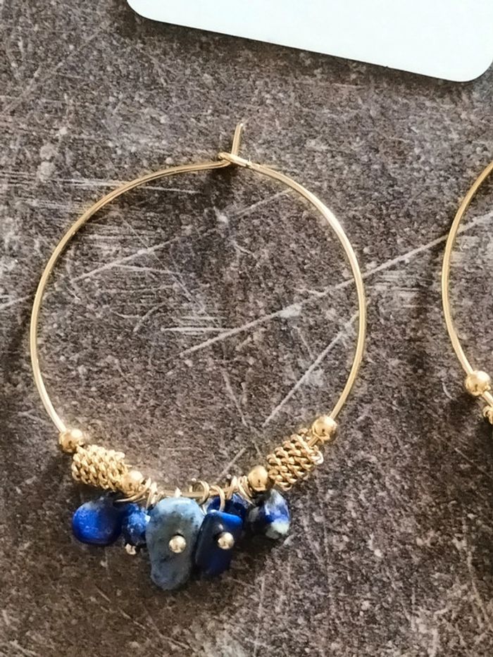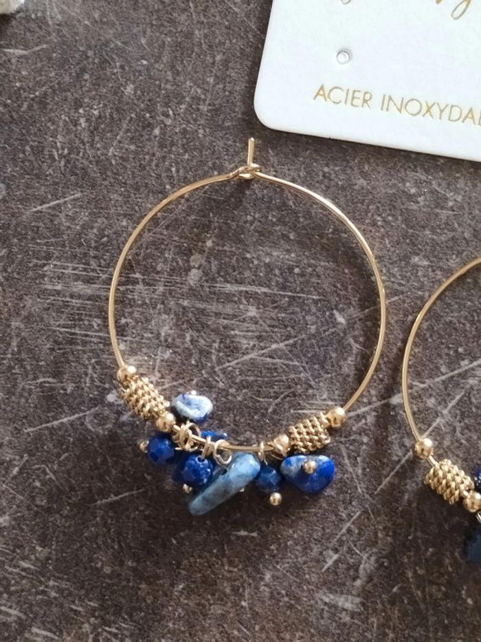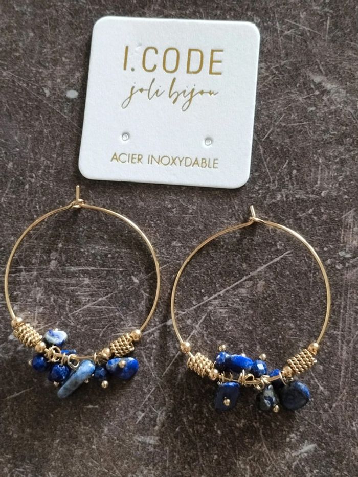 Boucles d'oreilles dorées et bleues En très bon état comme neuves I-code
