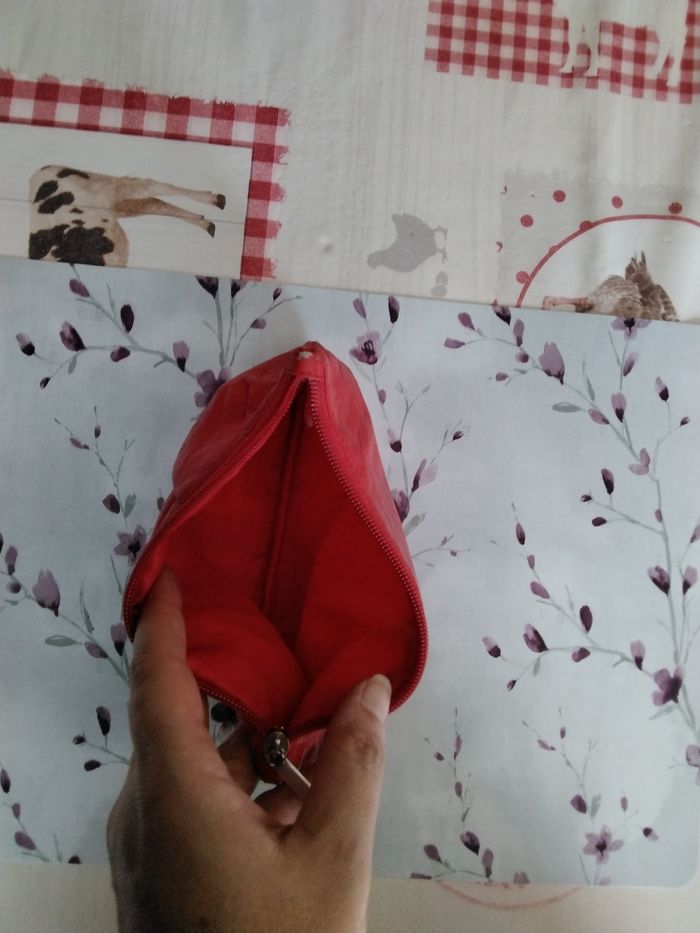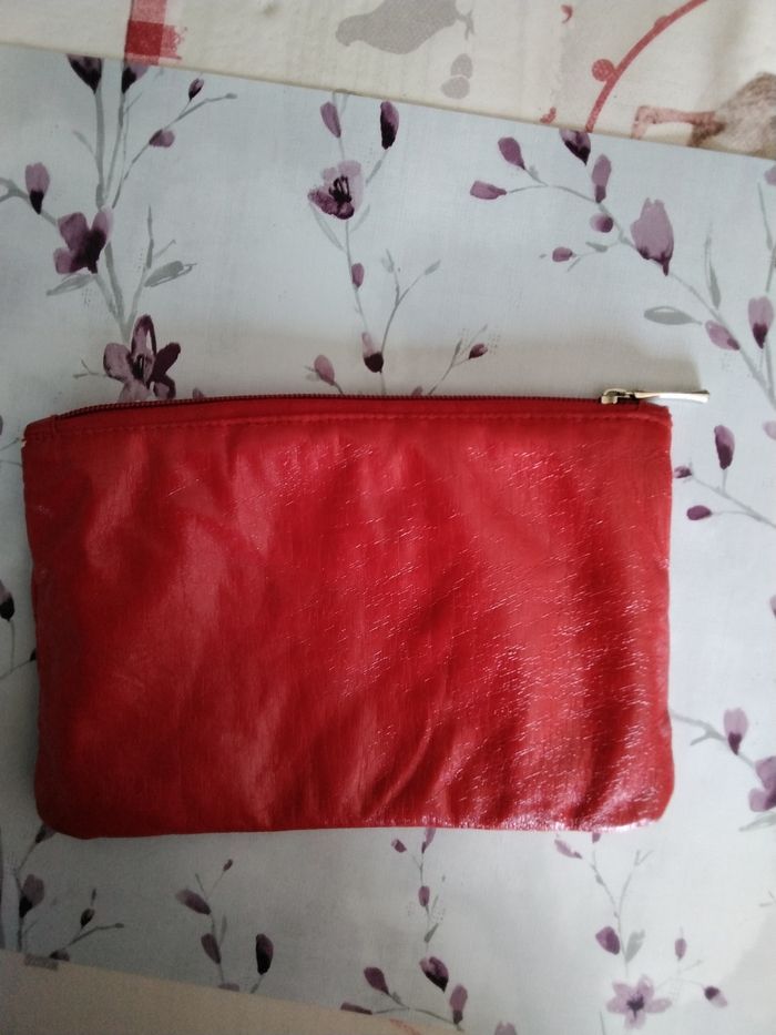 Trousse de toilette rouge, matière souple 20 x 14 cm Quelques légères taches