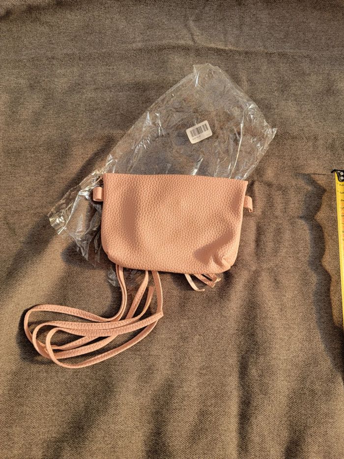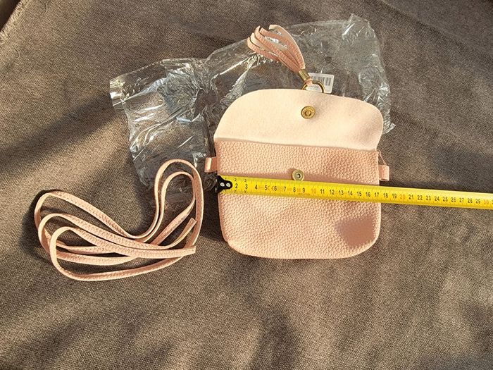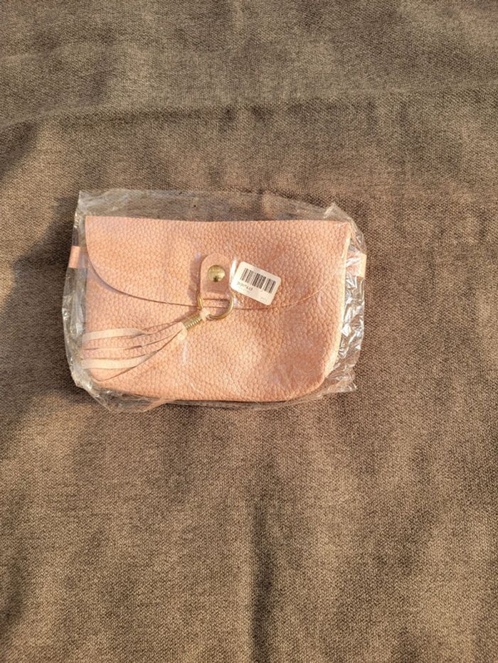 Petite pochette rose saumonet avec pression et sangle .format idéal pour le portable .neuve.