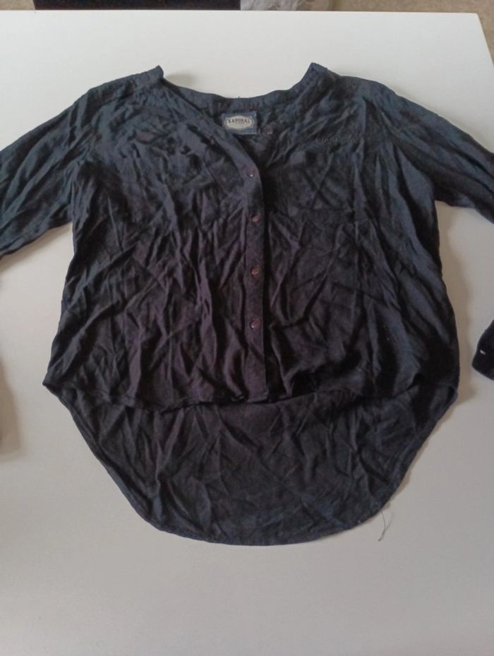 Chemisier femme Kaporal taille XS en bon état mais un trou au niveau du coude voir photo court devant et plus long derrière
