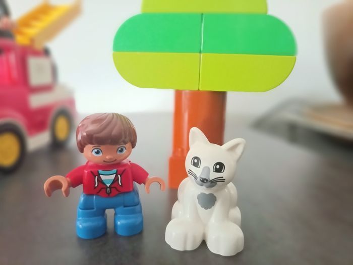 Duplo Town Le Camion De Pompiers Jouet pour Enfants 2-5 Ans avec Son, Lumière et Figurines Un pompier et un enfant Plus une figurine de chat et un arbre à construire.