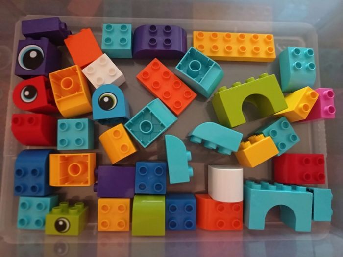 Lego duplo environ 40  pièces diverses  avec 2 figurines, toboggan - photo numéro 1