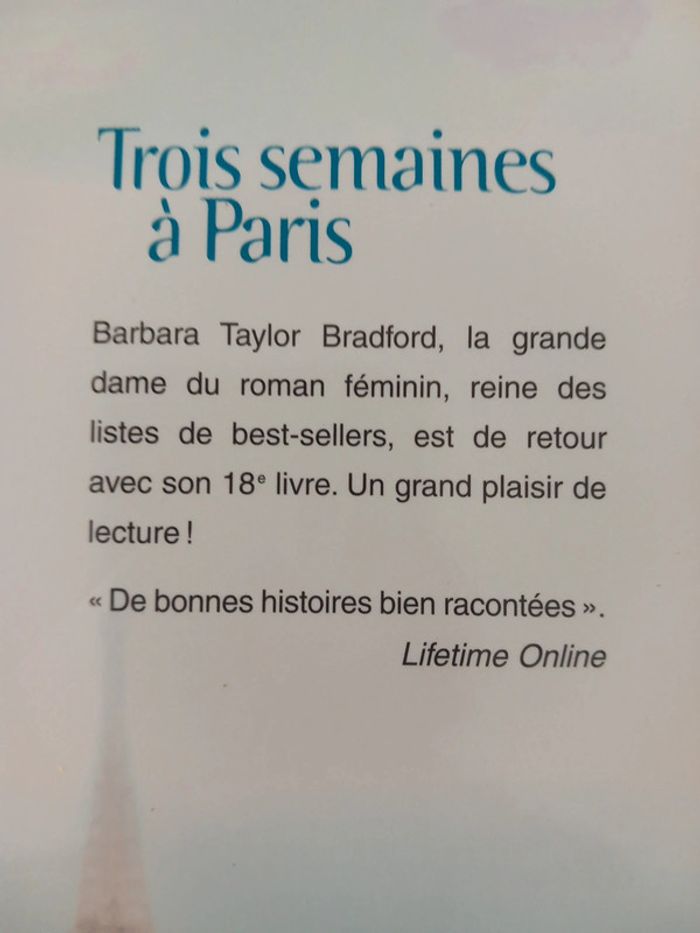 En très bon état. Auteur : Barbara Taylor Bradford. 376 pages. #livre
