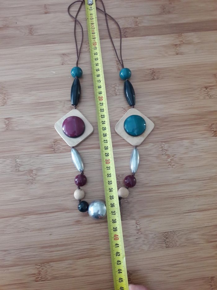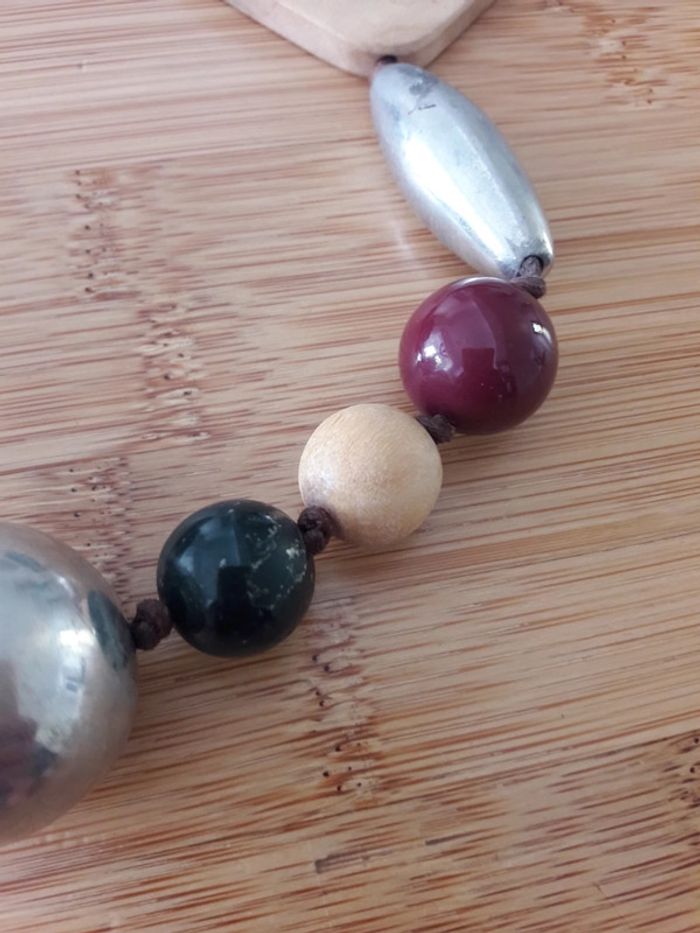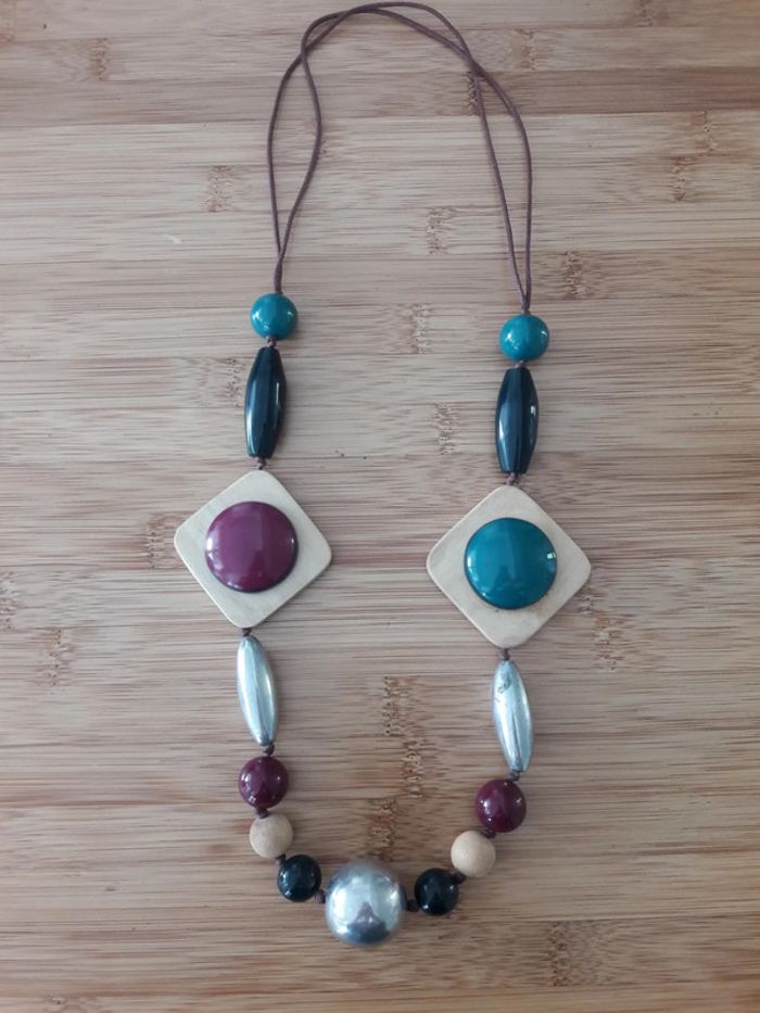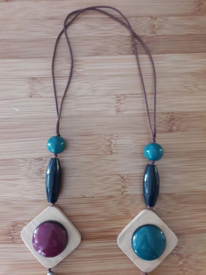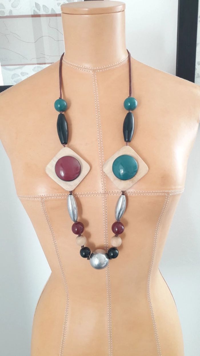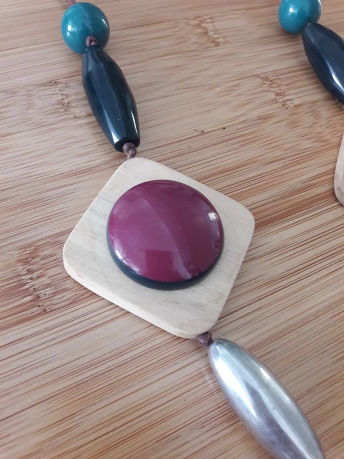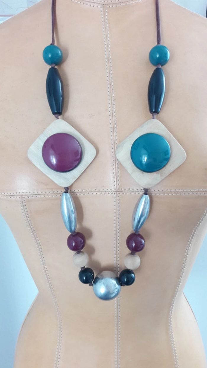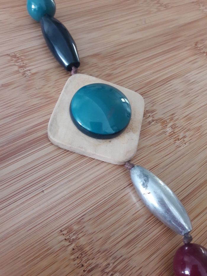 #collierfantaisie #violet #bleucanard #collierperles #bois #bijouoriginal #vintage #bijouvintage