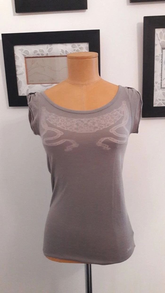 💖 Top manches courtes gris Naf Naf Taille S - photo numéro 2