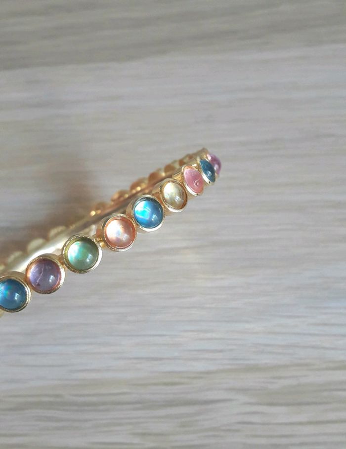 🚥 Achetez malin 😏 constituez un lot pour réduire le coût des frais de port et bénéficier de réductions automatiques  😉 10% pour 2 articles 20% pour 3 articles 30% pour 5 articles Magnifique bracelet doré avec incrustations pierres aux couleurs pastels Importé des Indes fabrication artisanale État neuf car hélas trop juste pour moi Attention pour poignet fin 6cm de diamètre Très belle piece 👌💖 #karroaccessories #bracelet #braceletneuf #pastel #indes #boheme #bohemechic #bijoux #bijouxfemme #karrobijoux #karrobijoux