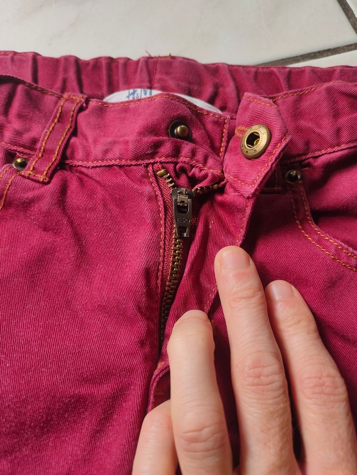 Pantalon coloris bordeaux, fermeture bouton pression, taille ajustable avec élastique boutonnière, marque H&M taille 116 soit taille 6 ans. Il est en bon état. Composition : 100% coton Prix ferme, PAS DE NÉGO !!! D'autres vêtements 6 ans dans mes annonces.