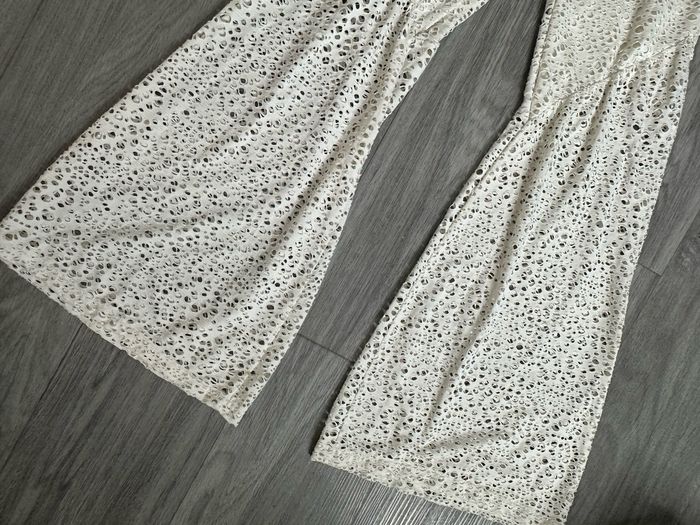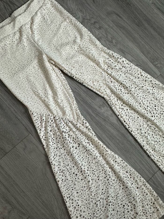 Pantalon ajouré flare seventies beige crème T38 M - photo numéro 1