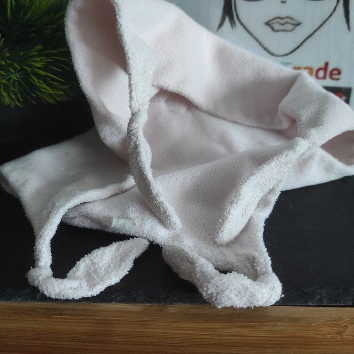 doudou lapin carré plat noeud rose rosé blanc carrefour france - photo numéro 3