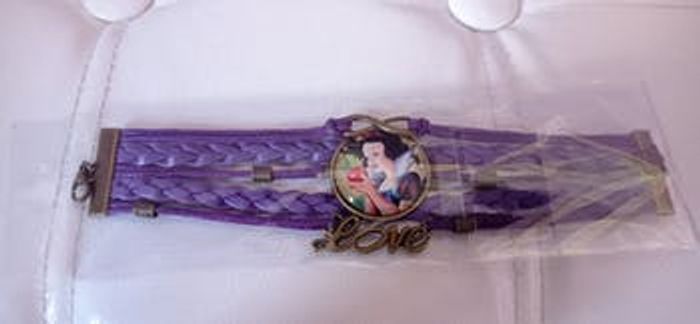 Bracelet tressé rehaussé d'un médaillon Blanche neige et de l'inscription LOVE