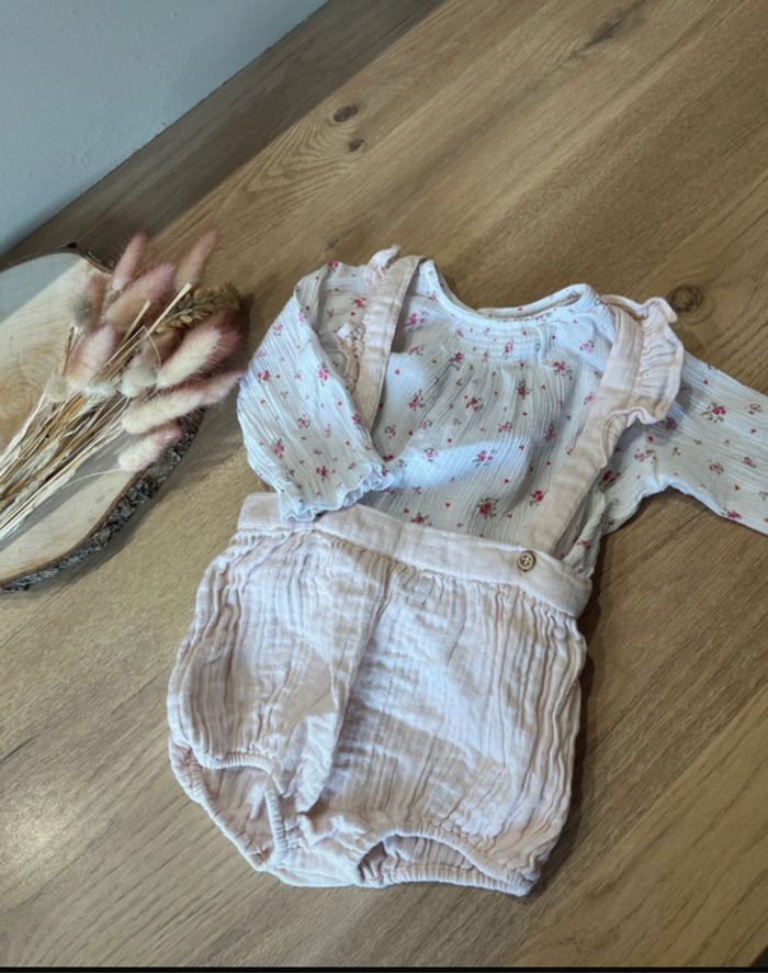 🌸Bonjour Ensemble composé d’un bloomer à bretelle rose pale Cyrillus 6 mois et un chemisier petit bateau 6 mois 🌸 🌿 Sans taches ni trou 🌿 🚭Maison non fumeur 🚭 🫧Lessive bébé utilisé🫧
