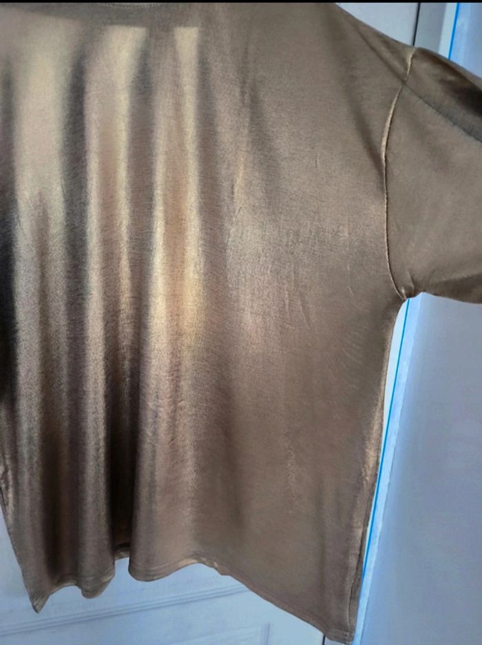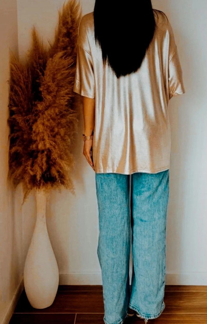 Magnifique tee shirt loose doré Fluide léger non transparent Taille M Épaule a plat 60 cm Longueur 77 cm