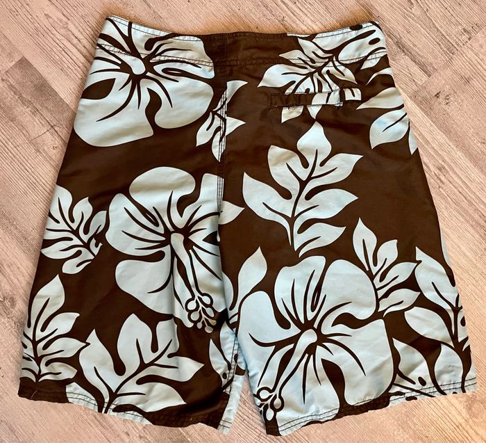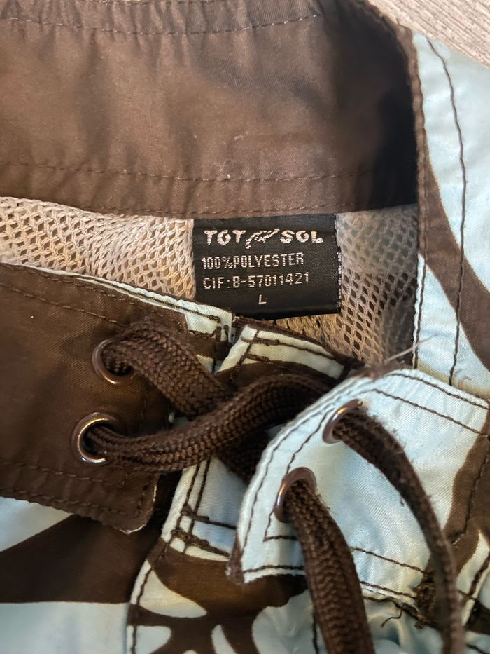Short de plage de la marque TGT SOL Taille L Couleurs marron et bleu clair Petites traces d’utilisation Occasion, bon état
