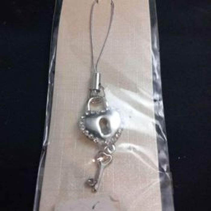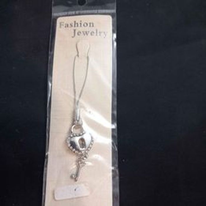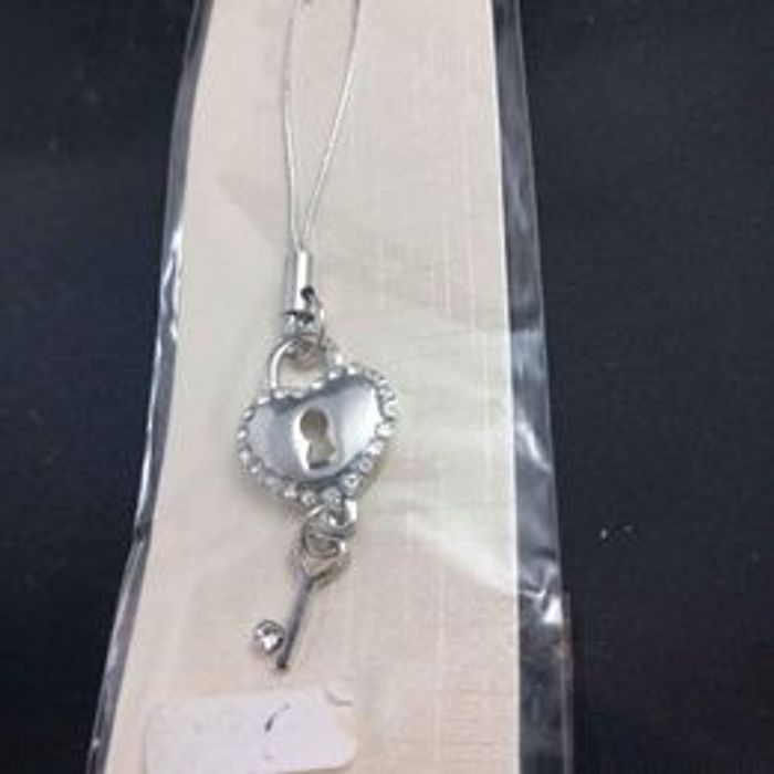 Bijou pour téléphone portable Matières métal strass Forme cœur avec clé Couleur argenté Marque fashion jewelry Neuf encore emballé Dimensions approximative : 8,5cm de long : 1,5cm de large