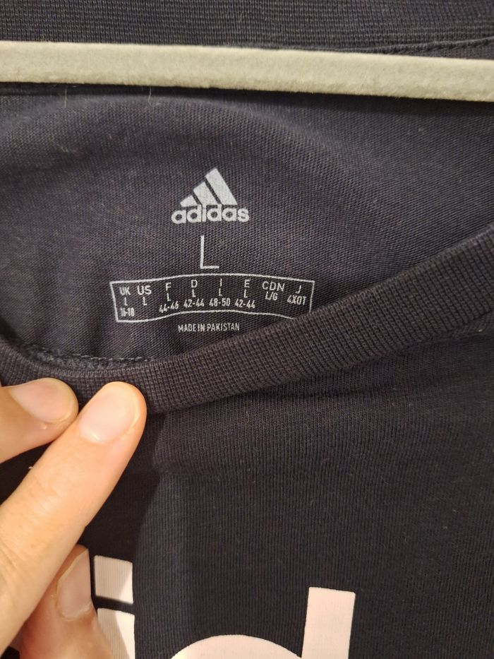 Bonjour ✴️Je vend ce tee-shirt neuf en parfait état ✴️De la marque Adidas ✴️À col rond manches courtes ✴️100% coton ✴️Couleur bleu marine uni ✴️Imprimé Adidas sur le devant en blanc et couture logo Adidas sur la manche gauche brodé ✴️Taille L-40 taille très bien ✴️Mesurant 62cm de longueur devant depuis les épaules ✴️Mesurant 40cm de largeur d'épaules ✴️Mesurant 45cm de largeur d'aisselles