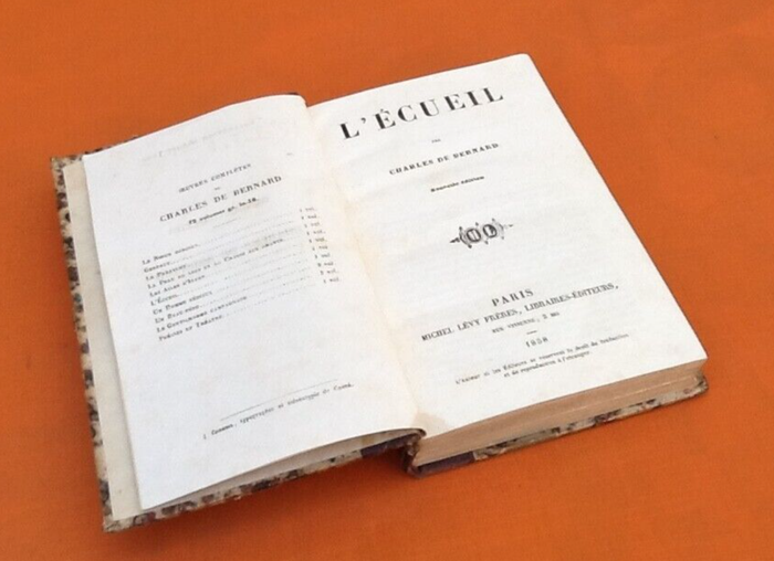 (article vendu en l' état, état d' usage voir toutes les photos) Oeuvres complètes de Charles De Bernard L' Ecueil (1858) 382 pages Michel Lévy Frères Libraires-Editeurs Paris (180x115x25)mm Poids : 310grs