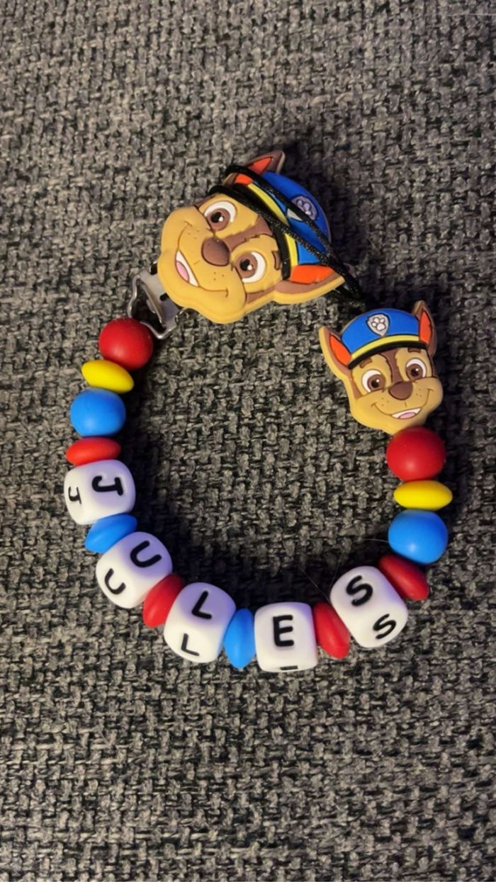 Attache tétine personnalisé en silicone ou en bois au souhait de l’acheteur . Personnalisable au choix de l’acheteur que ce soit la couleur comme le prénom ou le thème . Le fil est doublé pour plus de sécurité tout le long de l’attache tétine. N’hésitez pas à me demander et regarder mon dressing. Une photo vous sera envoyée avant l’expédition pour vous ayez un aperçu du rendu. Tous les produits sont réalisés avec du materiel spécial conçu aux bébés , enfants.