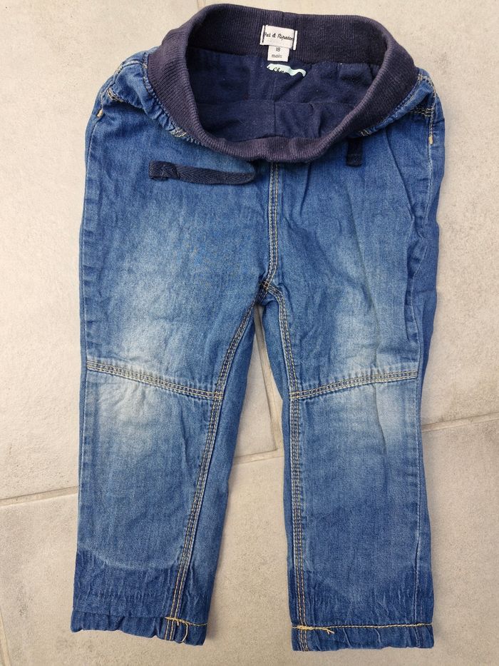 2 sont usés aux genoux (Sergent Major et Pat & Ripaton) et sont assez fins et souples bien que doublés et le 3ème (Du Pareil Au Même) est troué à un genou et est plus épais. Je pense qu'il peuvent toujours encore faire les beaux jours d'un petit garçon qui adore jouer en extérieur et se salir ! 😉 D'autres pantalons et hauts (t-shirts, chemises,...) en 18 mois dans mon dressing. 🧒💙🩵