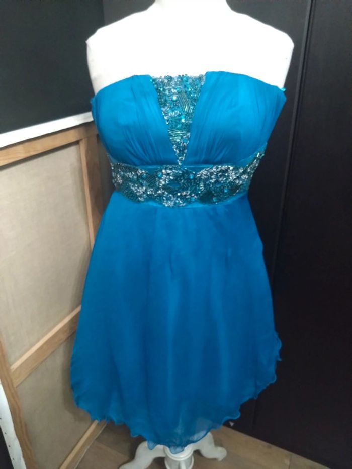 Robe cocktail en soie bleue t 34 36 - photo numéro 1