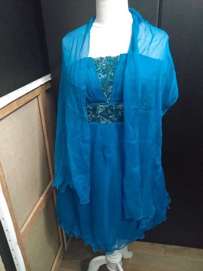Robe cocktail en soie bleue t 34 36 - photo numéro 2