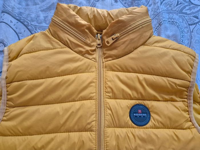 Je vends une veste sans manche Avec capuche qui se range au niveau du cou Redskins Taille 10 ans Très bon état Jaune moutarde