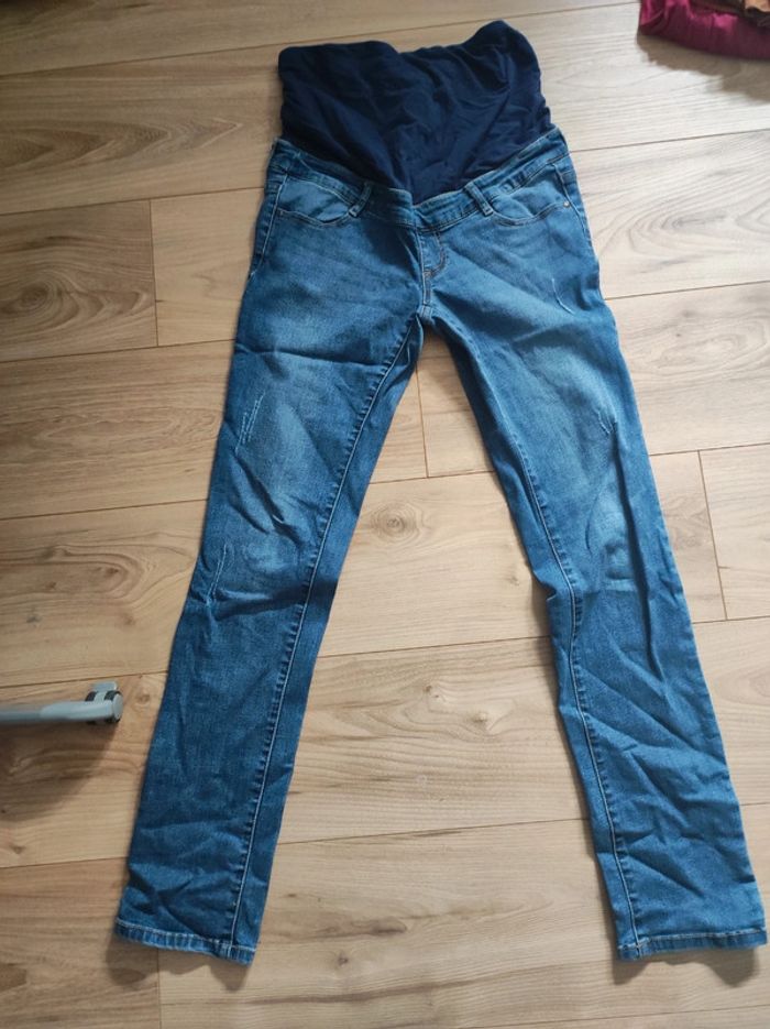 Jean avec bandeau de grossesse Effets usés sur les jambes Très bon état