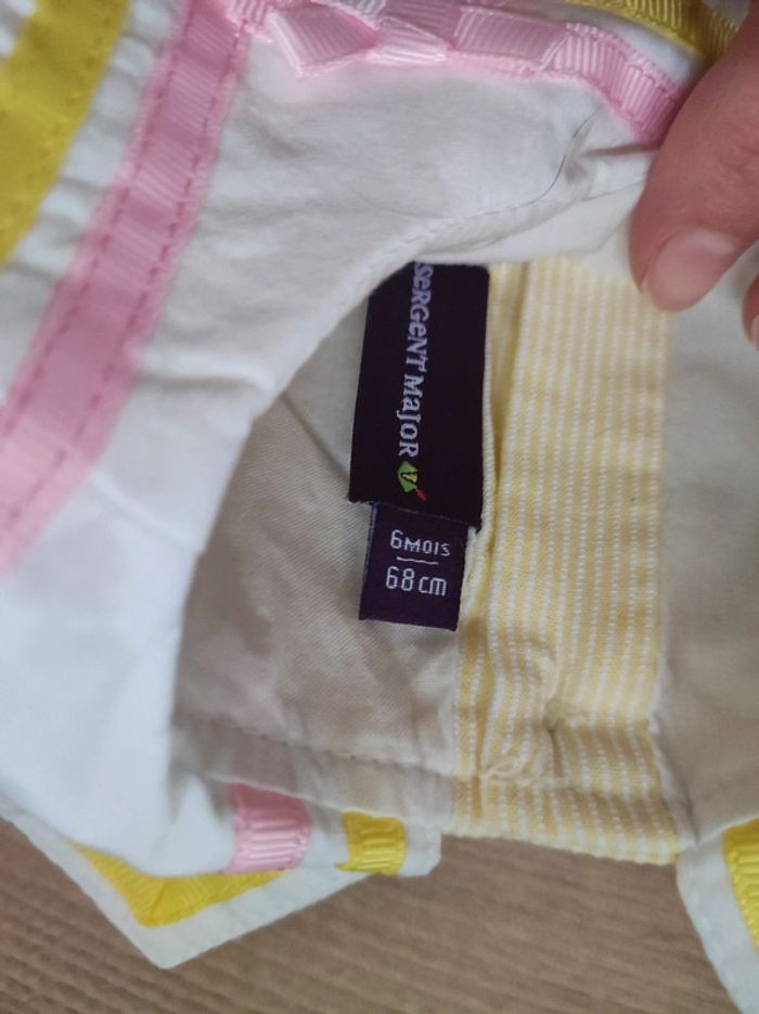 Robe 6 mois sergent major rayures fines jaunes et blanches Très bon état, peu portée