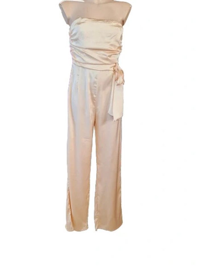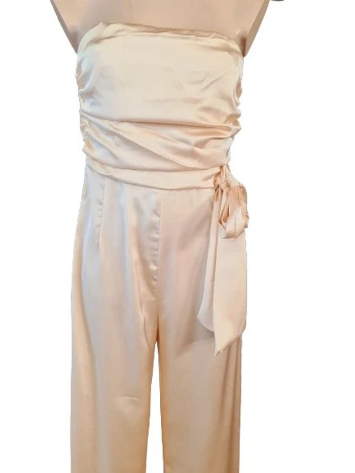 38 Largeur sous aisselles 40 cms Hauteur 135 Hauteur 87 Satin beige Polyester Jamais portée Avec étiquette