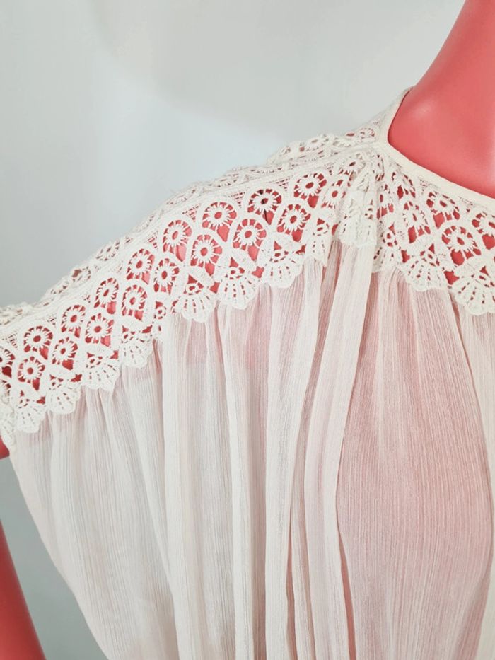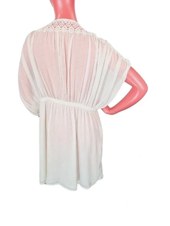 L Largeur sous aisselles 54 cms Hauteur 90 Transparente Blanc cassé. Polyester Très bon état