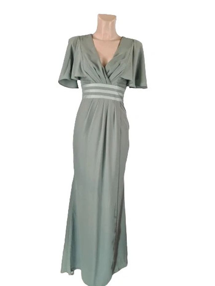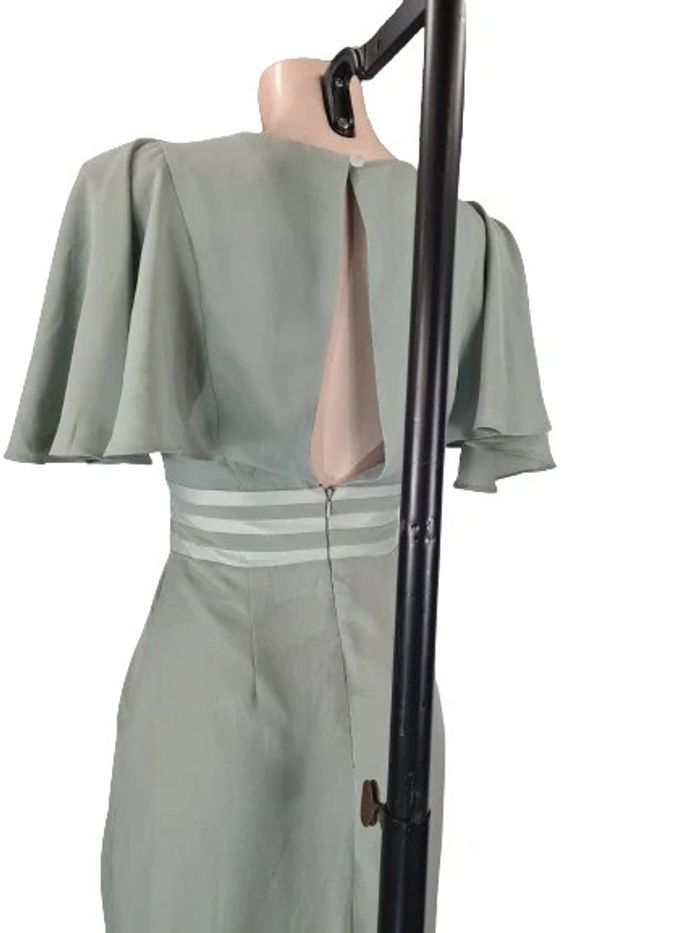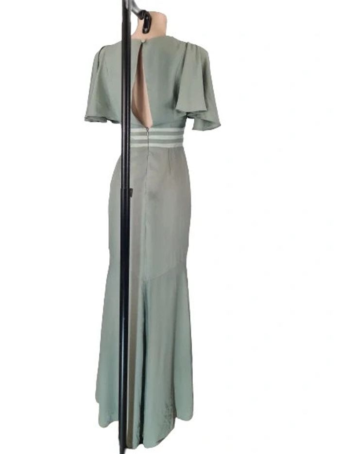 36 Largeur sous aisselles 46 cms Hauteur 150 Doublée Polyester Vert clair Très bon état