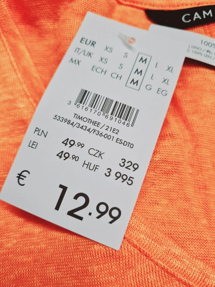 M Largeur sous aisselles 52 cms Hauteur 65 100% lin Abricot Jamais porté Avec ses étiquettes