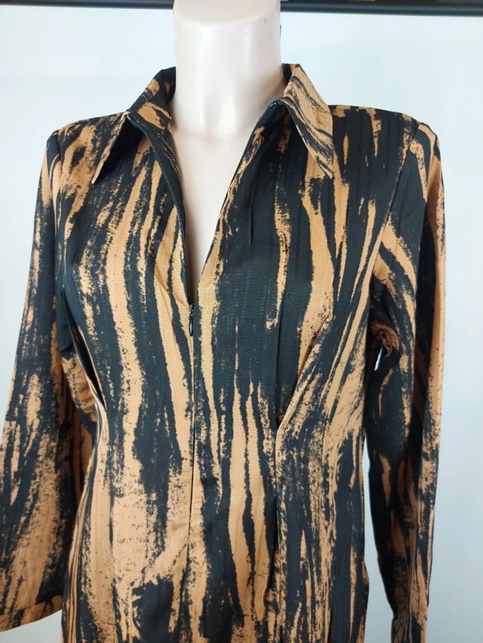 38 Épaule à Épaule 38 Largeur sous aisselles 45 Hauteur 120 Polyester Marron Jamais portée avec ses étiquettes #lestresors02_femme_38