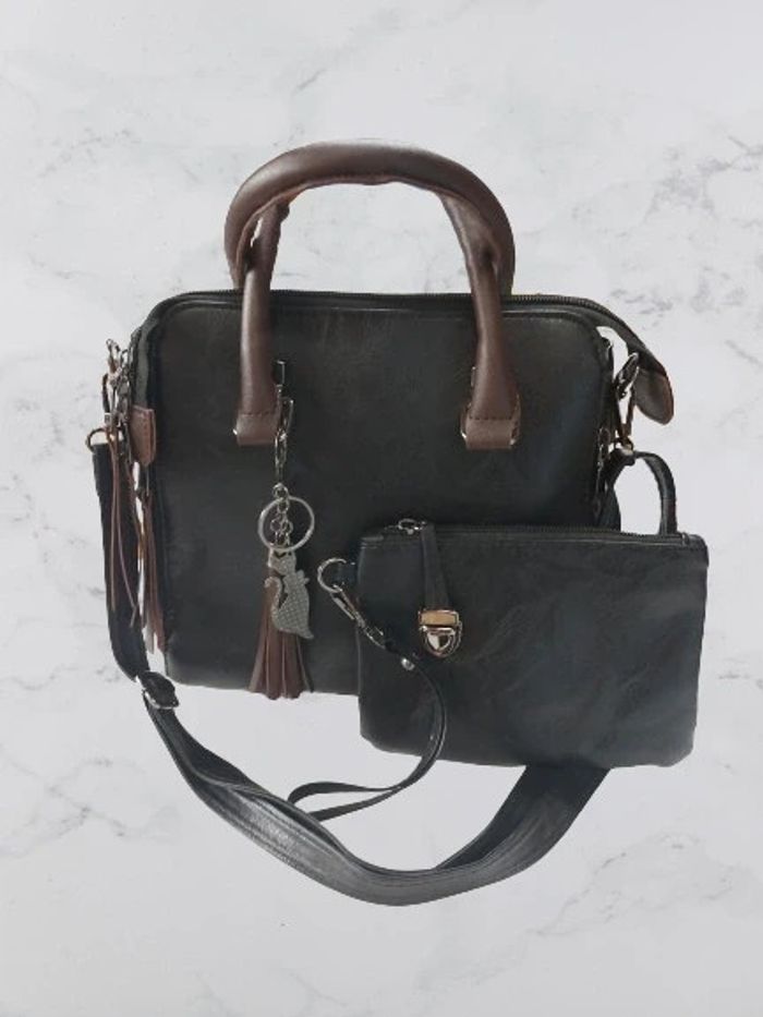 Sans marque apparente 23x24x16 Noir Anses marron Simili cuir Jamais porté Avec son porte monnaie