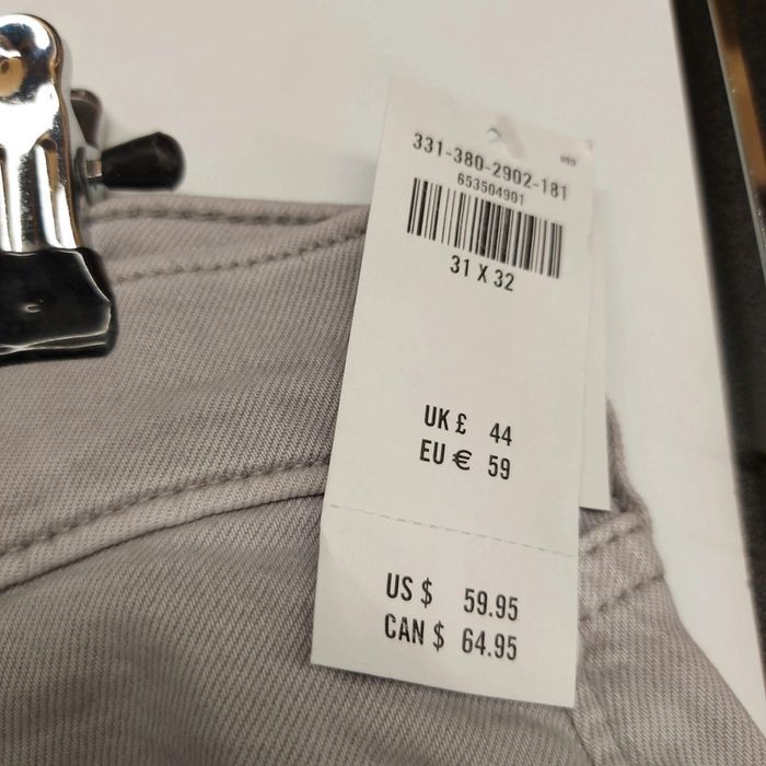 W31L32 Gris Skinny Tour de taille 84 cms Homme