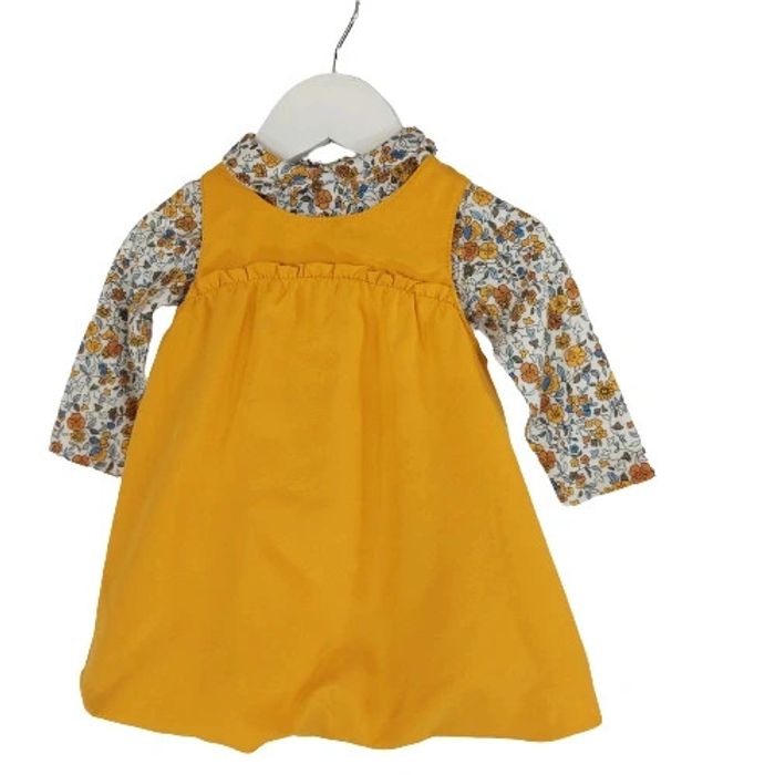 Blouse + robe moutarde 6 mois Sans marque apparente Polyester/ coton Très bon état