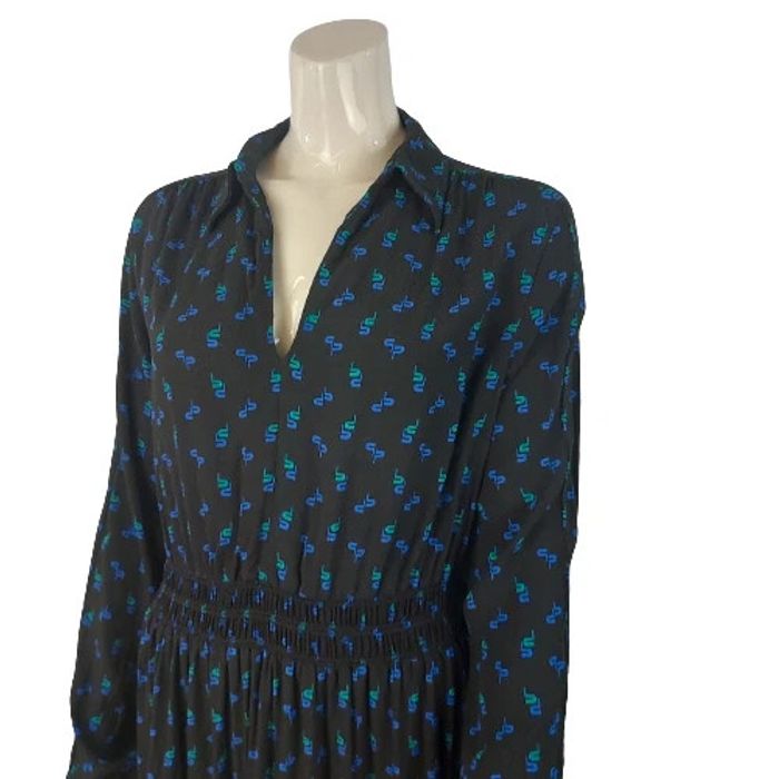 Taille 42 Épaule à Épaule 42 cms Largeur sous aisselles 52 Hauteur 90 Noir/ bleu Viscose Très bon état