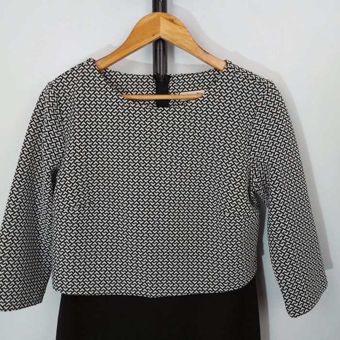 Modèle automne /hiver Noir/blanc. Taille 40 Épaule à Épaule 40 cms Largeur sous aisselles 46 cms Hauteur 92 cms Polyester Très bon état