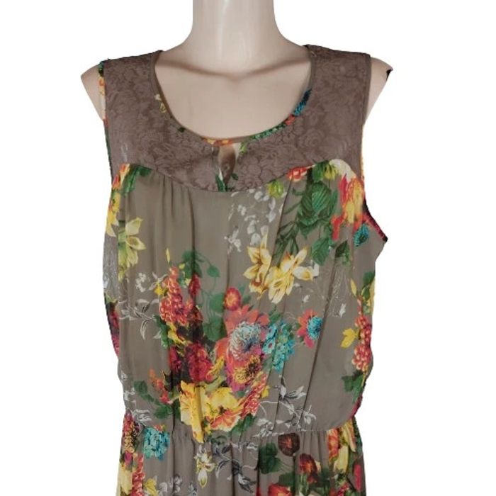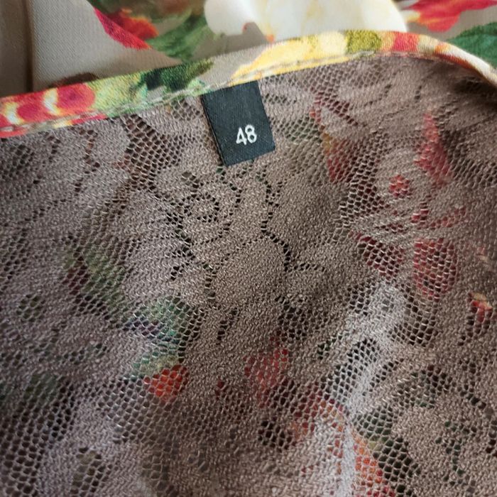Taille 48 Largeur sous aisselles 54 cms Hauteur 100 cms Taupe/ multicolore Doublée. Étiquettes de composition coupées Très bon état
