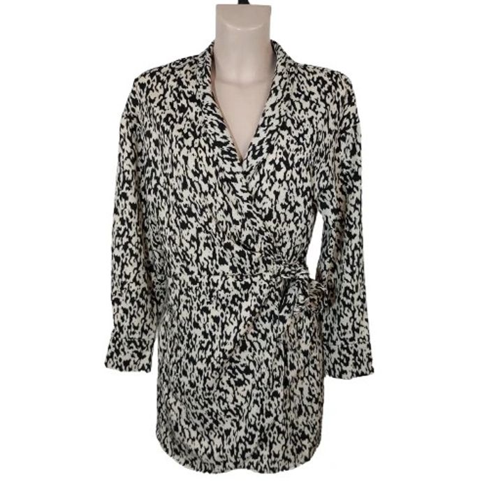 M Épaule à Épaule 38 Largeur sous aisselles 46 Hauteur 85 Blanc/noir Polyester/elastan Robe short portefeuille Jamais porté