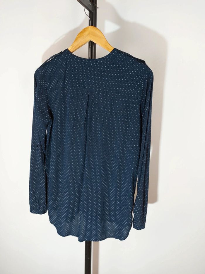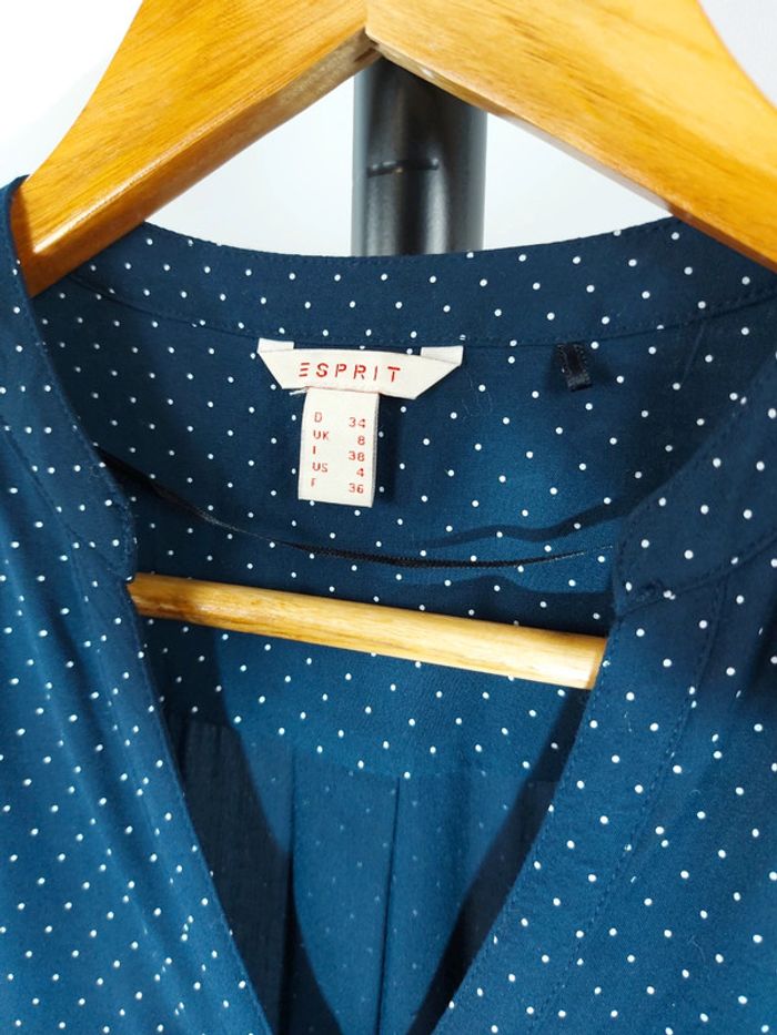 Taille 36 Épaule à Épaule 38 cms Largeur sous aisselles 46 cms Hauteur 72 cms Marine 100% viscose Très bon état