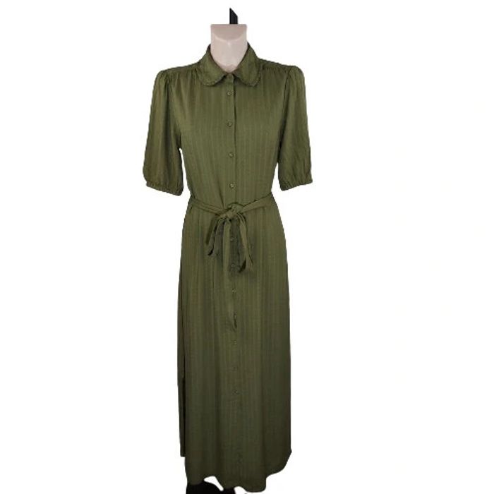 Taille 38 Épaule à Épaule 38 cms Largeur sous aisselles 47 cms Hauteur 140 cms Kaki 100 % viscose Jamais porté
