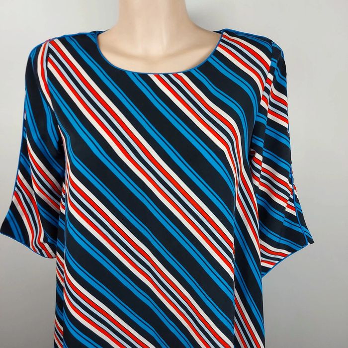 Bleu/noir /orange Taille 36 Épaule à Épaule 36 cms Largeur sous aisselles 46 cms Hauteur 90 cms Manches 3/4 Polyester Très bon état