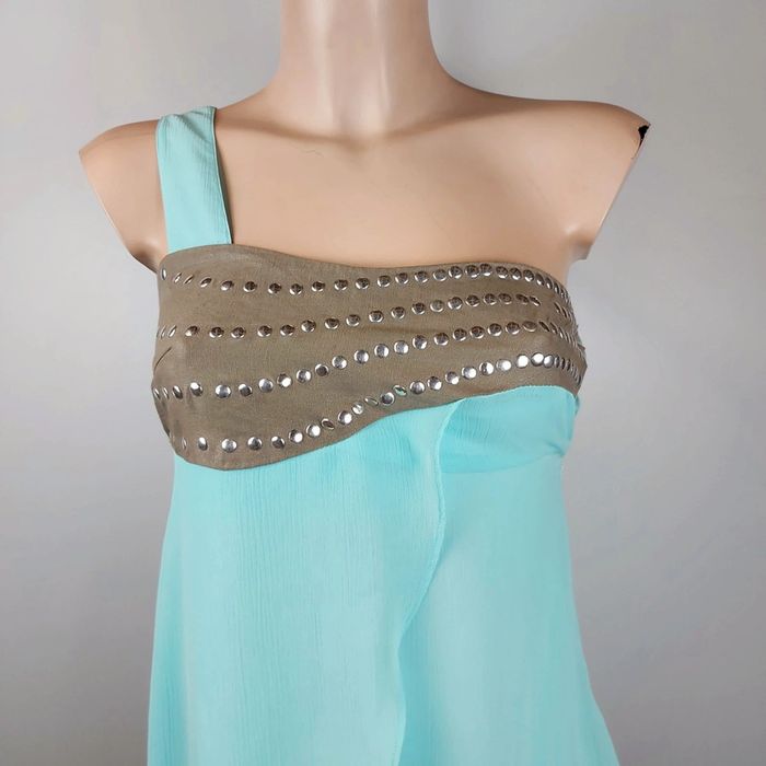 Turquoise Doublée. Taille 34 Largeur sous aisselles 38 cms Hauteur 73 cms Très bon état