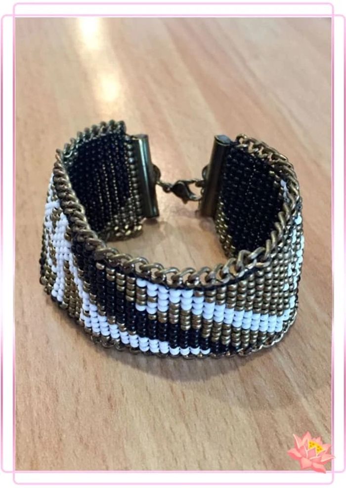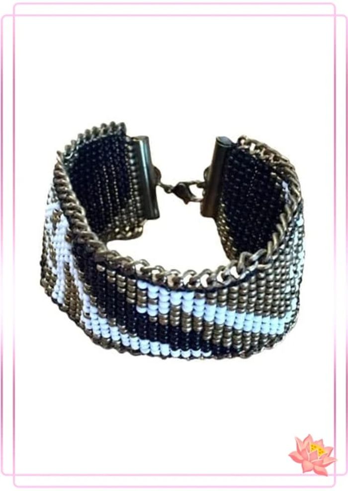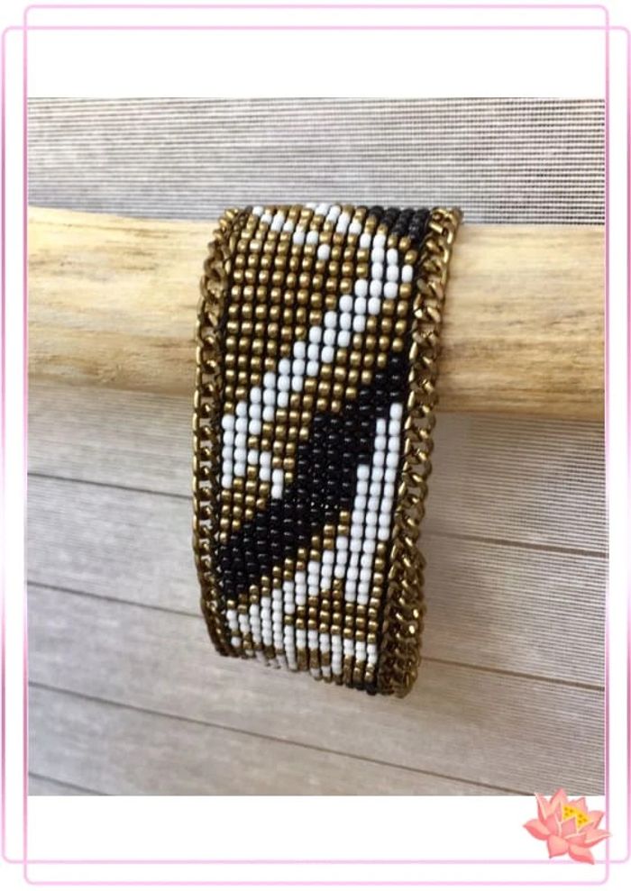 Bracelet manchette aztèque perles neuf noir/blanc/doré - photo numéro 1