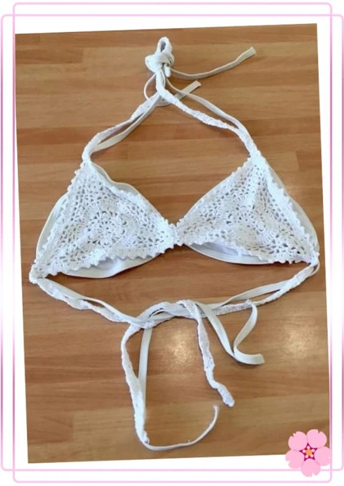 Haut de maillot de bain crochet écru valège t.s, neuf jamais mis, avec doublure.