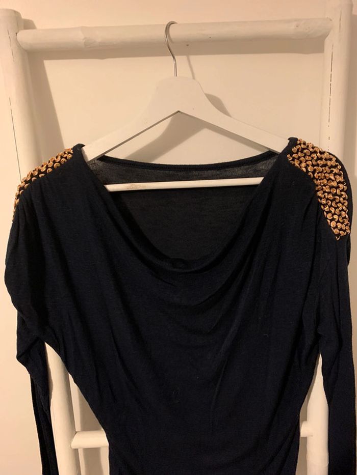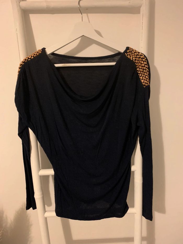 Pull fin marine manches longues avec sequins niveau épaule