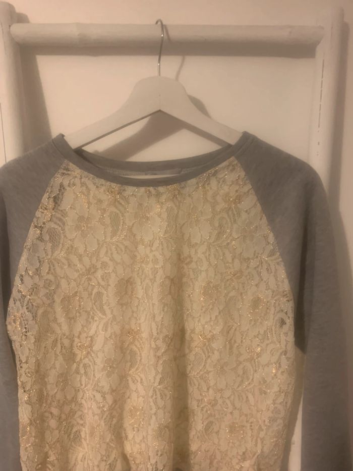 Pull gris dentelle - photo numéro 2