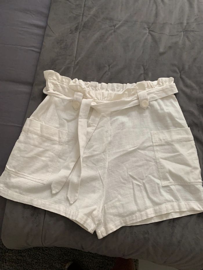 Short blanc avec poches taille élastique et ceinture peu porté